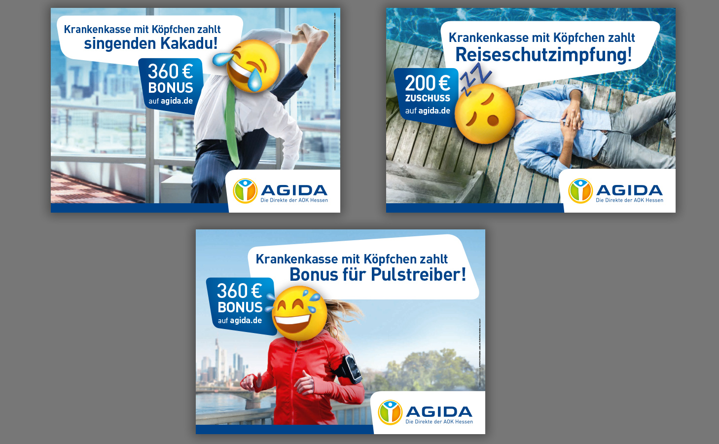 3 Motive für Plakatkampagne, AGIDA
